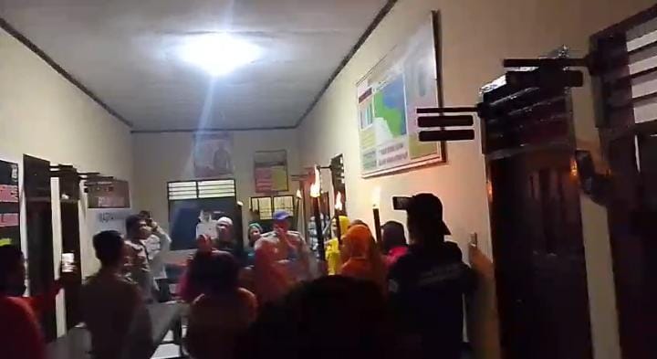 Puluhan masyarakat Torete pun, kemudian mendatangi Mako Polsek Bungku Selatan / Pesisir di Desa Lafeu dengan menggunakan motor dan mobil serta obor sebagai bentuk protes terhadap tindakkan kepolisian yang dinilai sewenang-wenang.