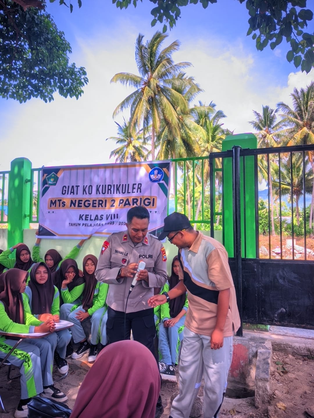 Parigi Moutong — Upaya membangun kesadaran disiplin sejak dini terus dilakukan jajaran Kepolisian. Kapolsubsektor Mepanga, IPDA Yayang Luki. E, turun langsung ke lingkungan pendidikan dengan melaksanakan kegiatan Ko-Kurikuler bertema Tertib Lalu Lintas demi Keselamatan di Jalan bersama siswa-siswi kelas VIII MTs Negeri 2 Parigi, Desa Kotaraya Selatan, Kecamatan Mepanga, Kabupaten Parigi Moutong.