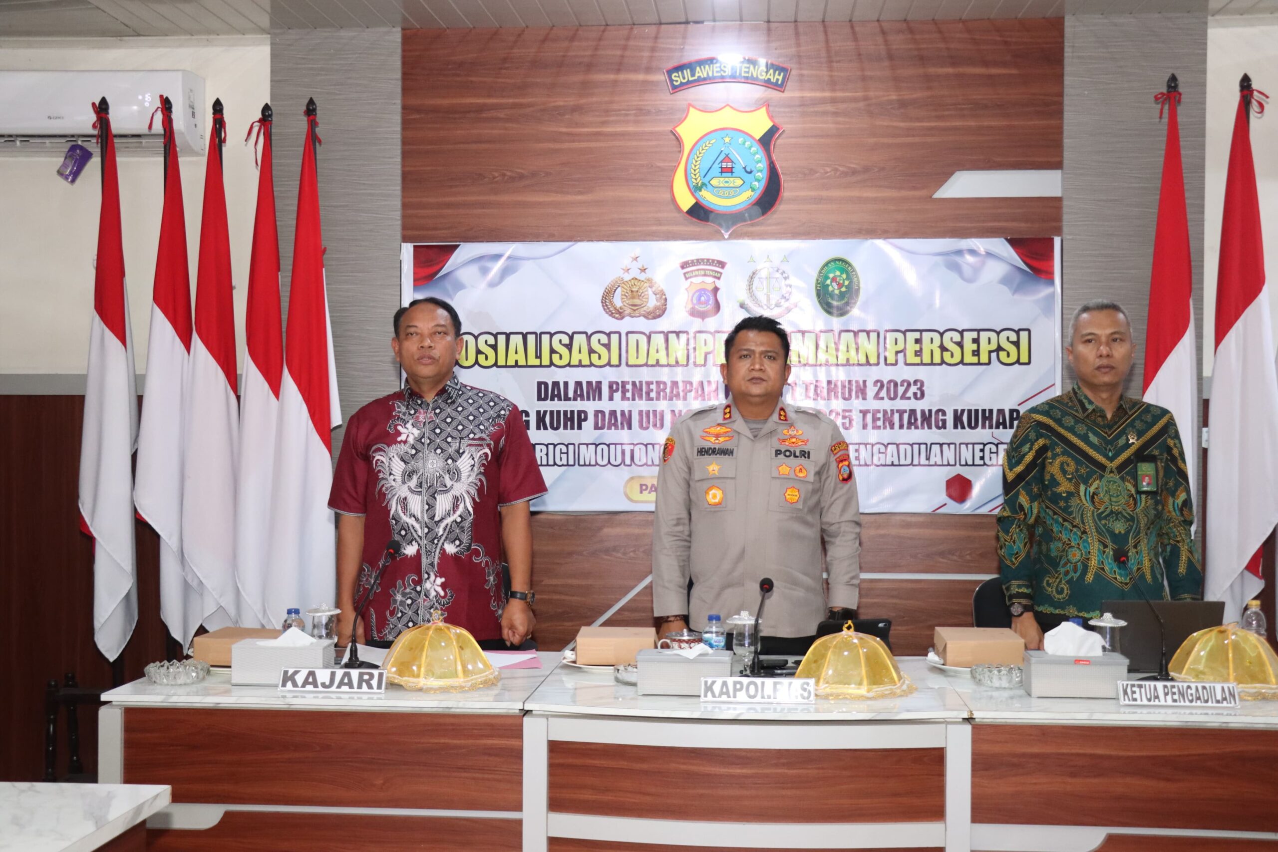 Kegiatan strategis yang berlangsung di Aula Sanika Satyawada Command Center Polres Parigi Moutong ini menjadi momentum penting penyatuan langkah aparat penegak hukum dalam menyongsong implementasi sistem hukum pidana nasional yang baru. Hadir dalam kegiatan tersebut Kepala Kejaksaan Negeri Parigi Moutong Purnama, S.H., M.H., Ketua Pengadilan Negeri Parigi Kelas II Zainal Ahmad, S.H., serta para Pejabat Utama (PJU) Polres Parigi Moutong.