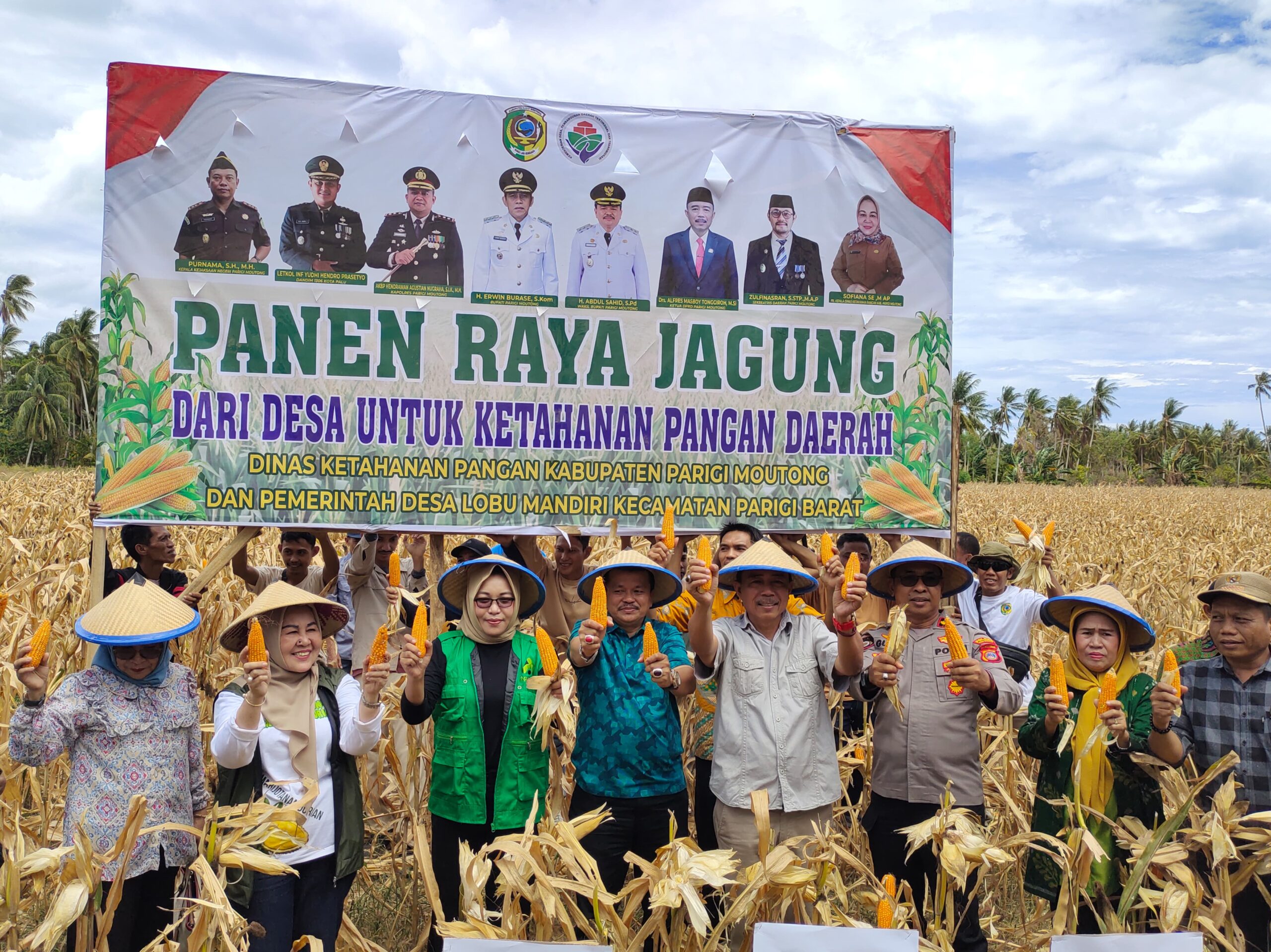 Panen raya jagung ini turut dihadiri oleh Ketua DPRD Kabupaten Parigi Moutong, Wakil Bupati Parigi Moutong, Kepala Dinas Ketahanan Pangan Kabupaten Parigi Moutong, Kepala Dinas Pemuda dan Olahraga Kabupaten Parigi Moutong, serta Kepala Dinas Pendidikan dan Kebudayaan Kabupaten Parigi Moutong, yang menunjukkan kuatnya kolaborasi antara unsur pemerintah, aparat keamanan, dan masyarakat.