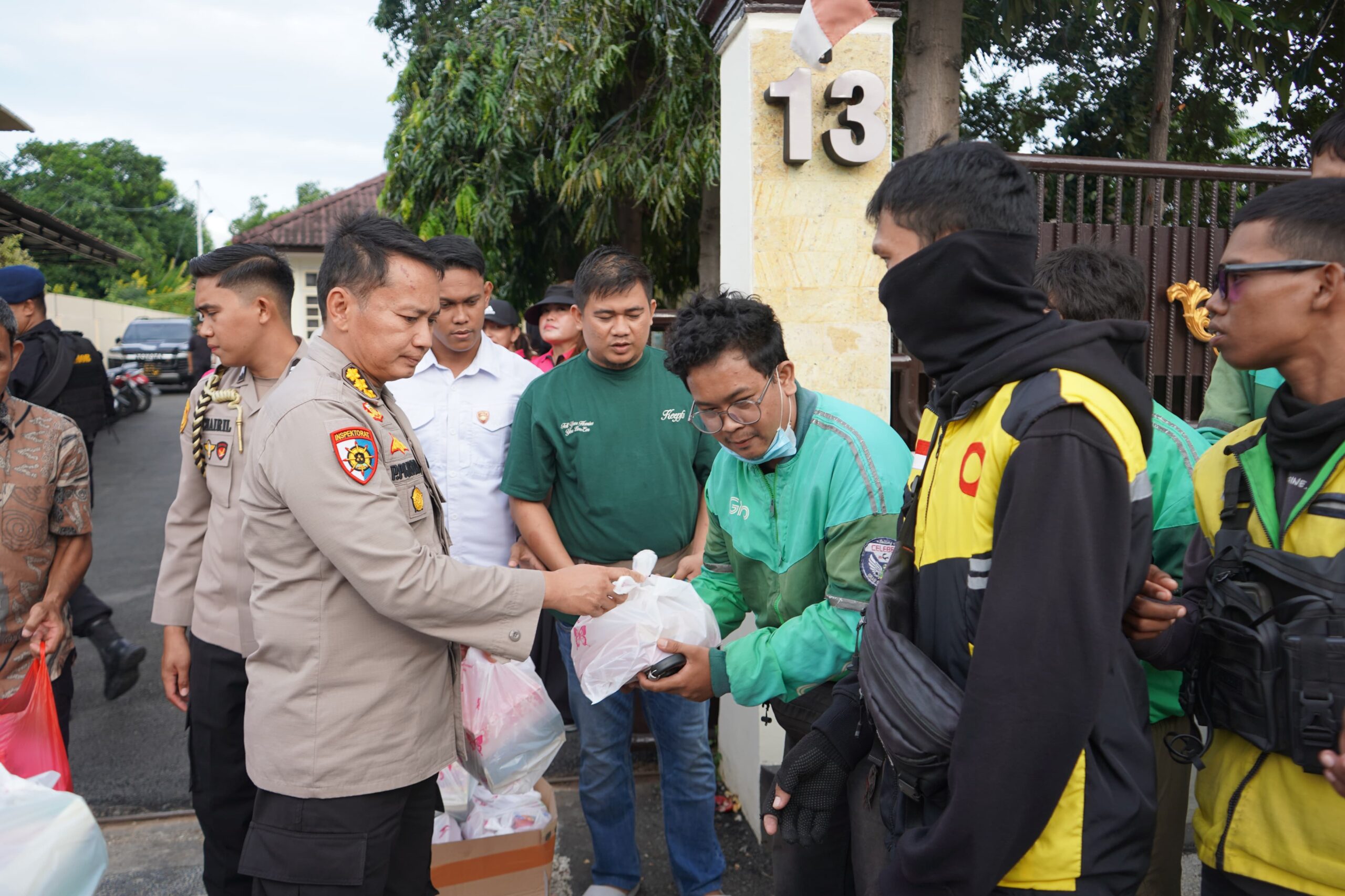 Kegiatan tersebut wujud kepedulian Polda Sulawesi Tengah dan Bhayagkari membagikan sebanyak 1.000 paket takjil kepada pengemudi ojek online (ojol) dan masyarakat yang melintas.