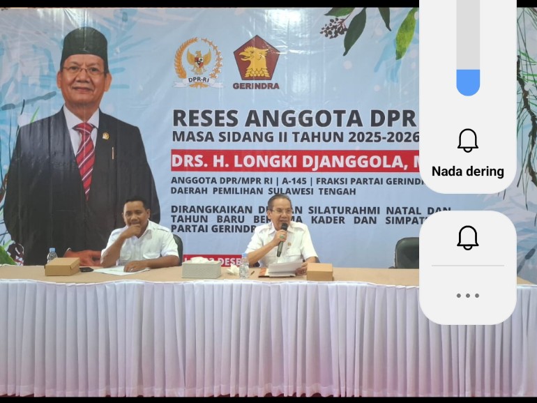 Palu — Anggota Komisi DPR RI Fraksi Partai Gerindra Longki Djanggola menggelar Reses Masa Sidang II Tahun 2025-2026 di Palu, Sulawesi Tengah. Reses dirangkaikan dengan silaturahmi Natal dan Tahun Baru untuk para kader dan simpatisan Gerindra yang beragama Kristen. Kegiatan rutin Anggota DPR RI ini digelar di Aula DPD Partai Gerindra Sulteng, Selasa (23/12/2025).