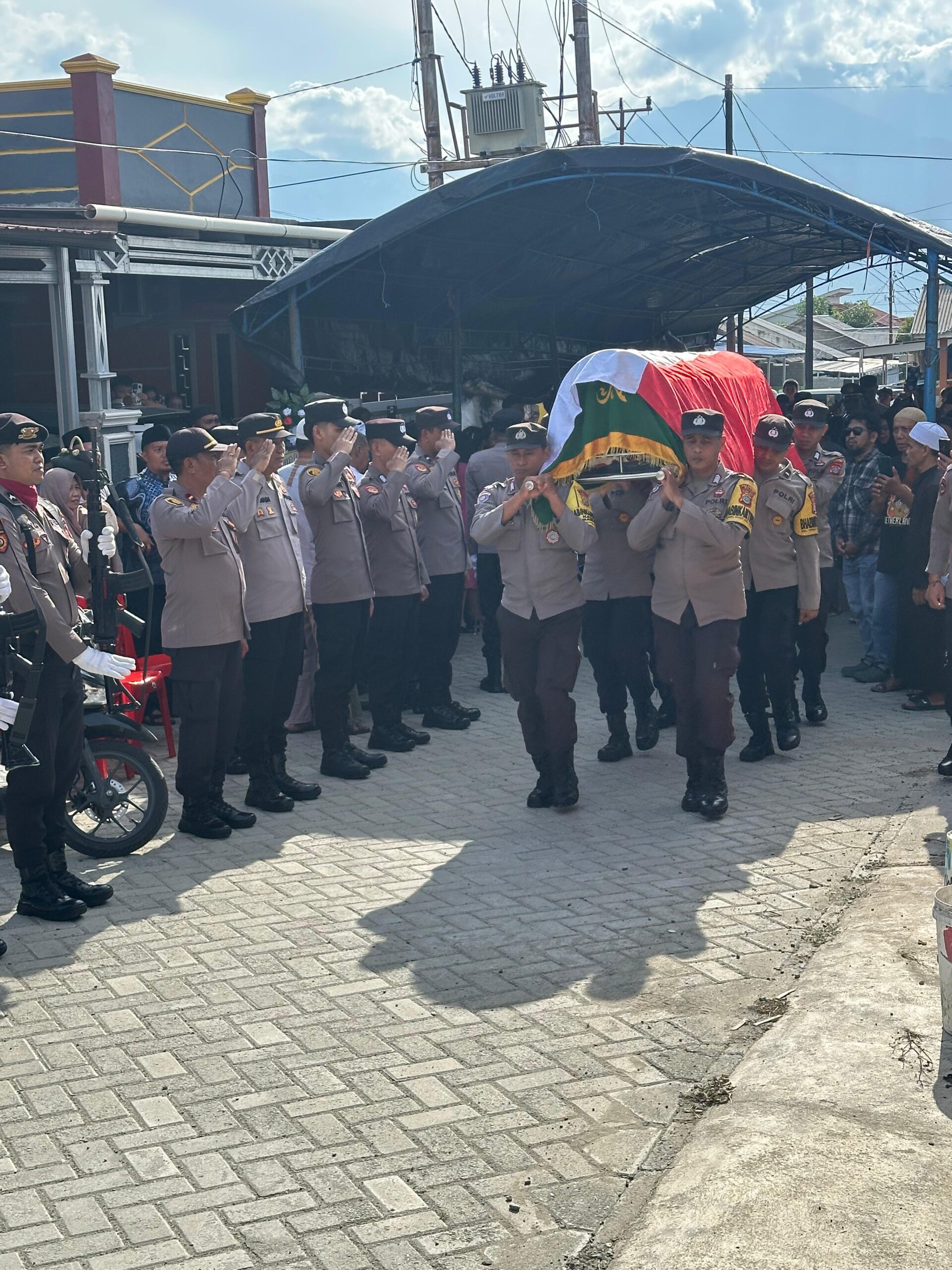 Barisan penghormatan yang mengiringi prosesi tersebut menjadi simbol penghargaan institusi Polri atas pengabdian almarhum selama bertugas menjaga keamanan dan ketertiban masyarakat, khususnya di wilayah hukum Polres Parigi Moutong.