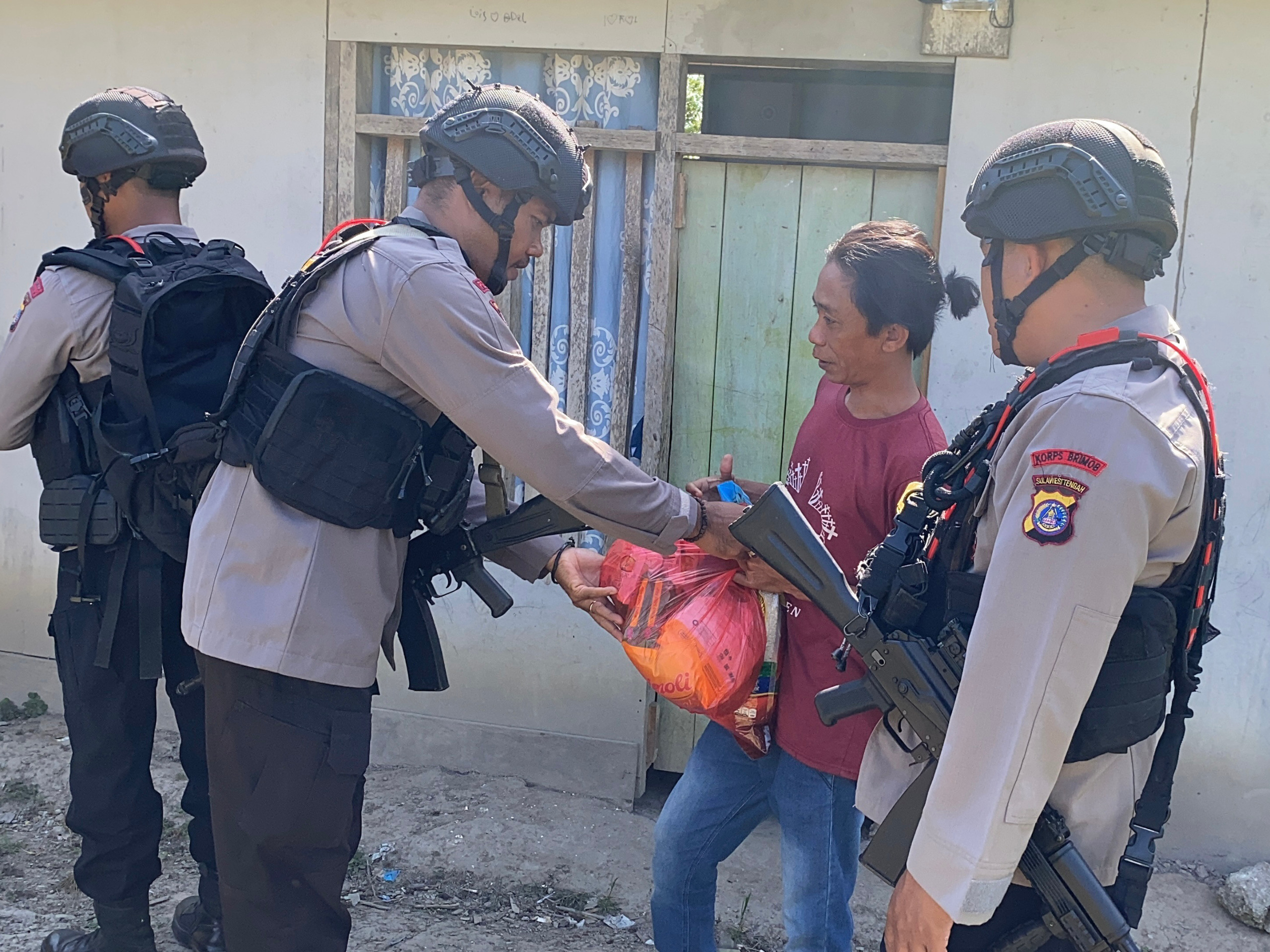 Setelah menyambangi rumah-rumah warga dan memastikan situasi kondusif, para personel Brimob ini membagikan paket sembako secara langsung kepada masyarakat setempat. Aksi ini merupakan bentuk kepedulian nyata Polri terhadap kondisi ekonomi warga di wilayah terpencil.
